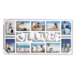 SY מק"ט 5325 מסגרת עמית 10 תמונות + LOVE מסגרת מפוצלת בצבע לבן עם כיתוב LOVE ועם לבבות לבנים.