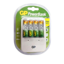 מטען סוללות כולל 4 סוללות 1000mAh NiMH AAA GP PowerBank
